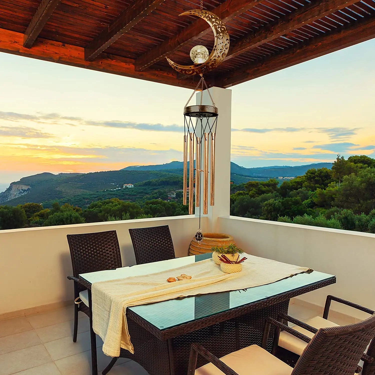 Outdoor Metal Wind Chimes Moon Sun Stars Wind Chime Solar Glowing Unique Wind Bells for Outside Waterproof Chimes Home Decor