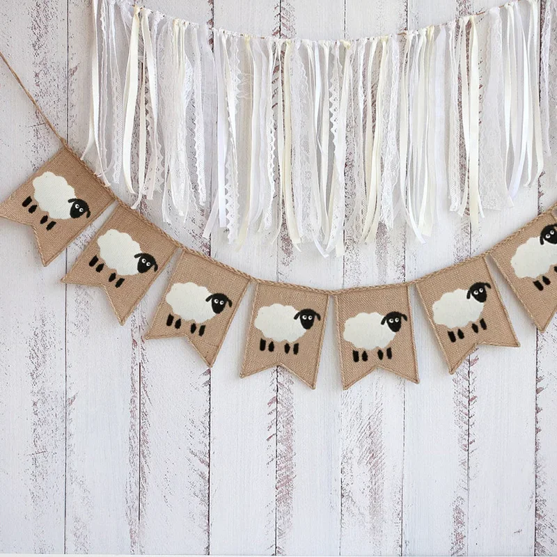 sheep Eid Mubarak burlap banner happy Ramadan Al Adha Muslim Islamic Kareem Iftar Party Home patio decoration supplies backdrop