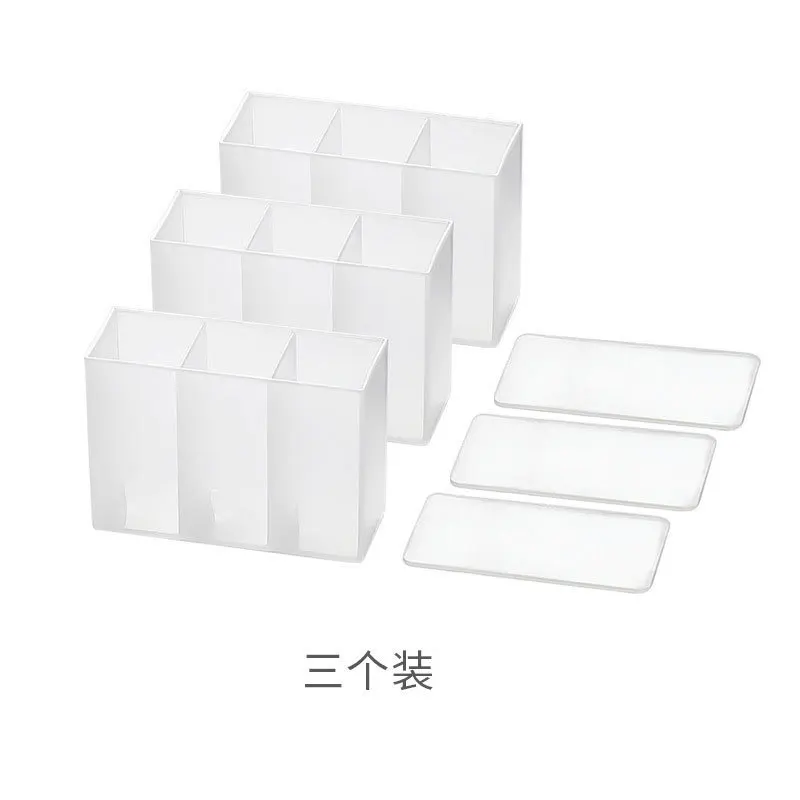 Wall Mounted 3Grids Organizer Mirror Cabinet Self-adhesive Small Objects Storage Box